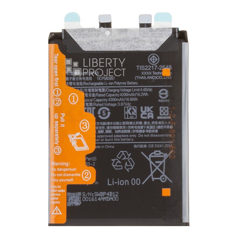 Описание: АКБ подходит для Xiaomi 12 Lite, гарантия длительной работы и максимальной производительности, для использования смартфона без сбоев.