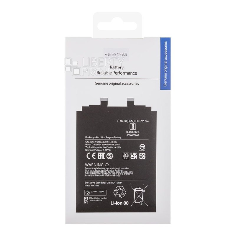 Описание: Аккумулятор предназначен для Xiaomi Redmi Note 13 4G, Xiaomi Redmi Note 13 5G, гарантия длительной работы и максимальной производительности, для использования смартфона без сбоев.