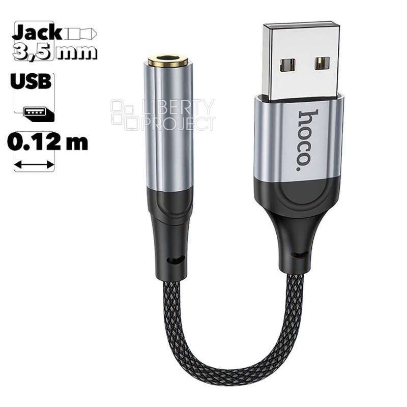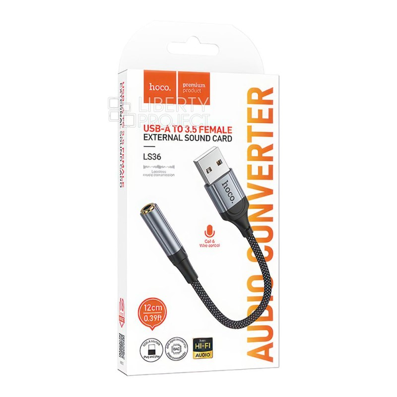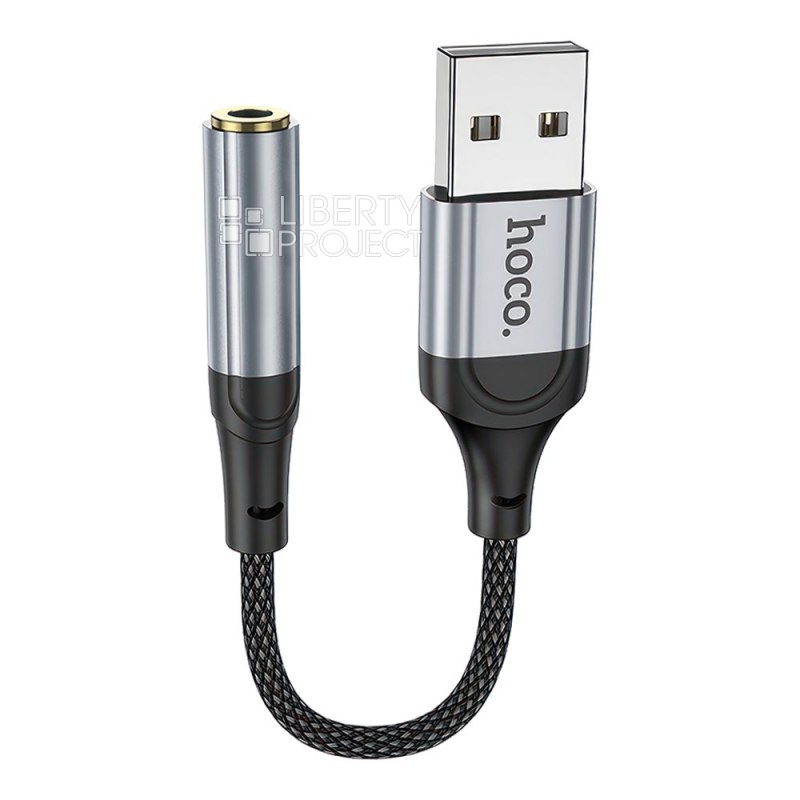 Аудио адаптер HOCO LS36 USB на 3.5мм, DC, 0.12м, нейлон (черный)