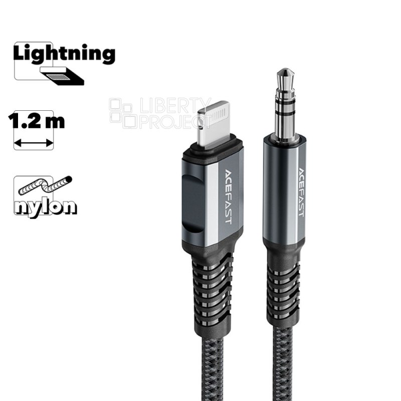 Аудиокабель ACEFAST C1-06 MiniJack 3.5, с металлическими коннекторами, 1.2м, нейлон (серый)