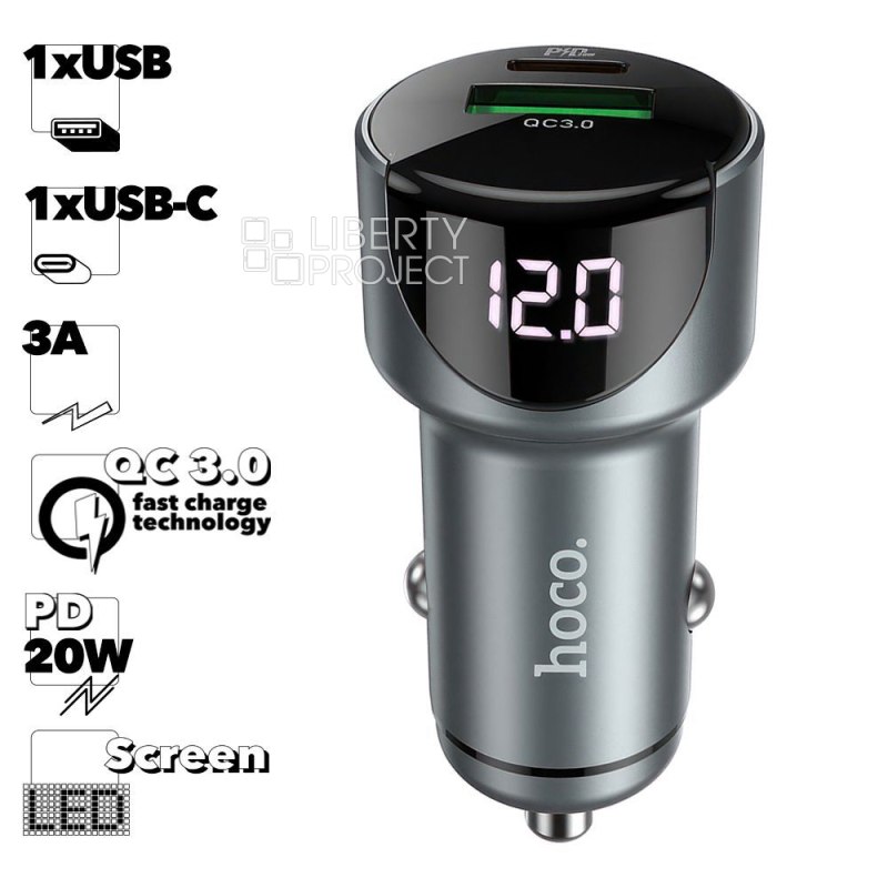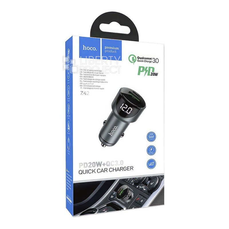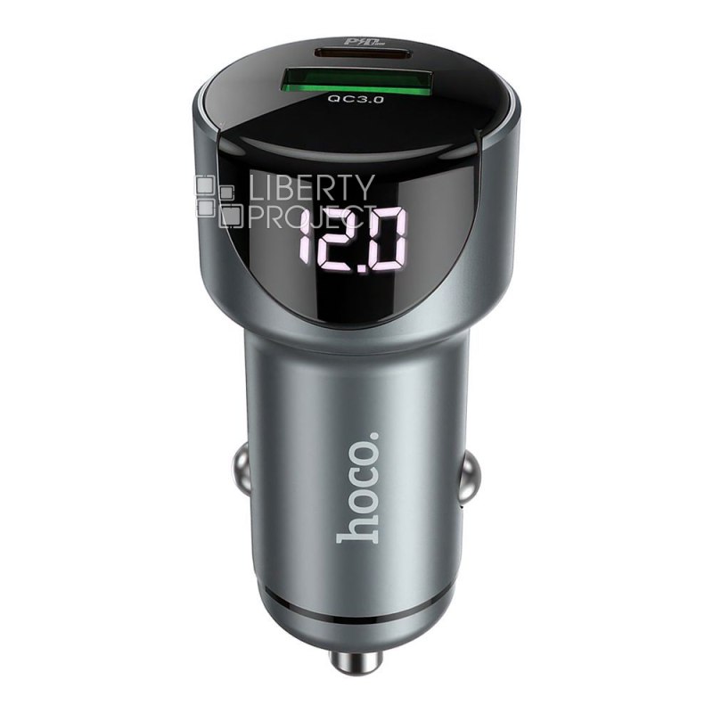 АЗУ HOCO Z42 Light Road 1xUSB, 1xUSB-C, 3А, PD20W, QC3.0, LED дисплей (серый) мятая