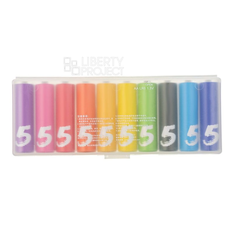 Описание: Цветные батарейки XIAOMI AA501 типа AA в упаковке 10 штук надёжное и долговечное решение для ваших устройств. Щелочные элементы питания обеспечивают стабильную работу пультов, игрушек, фонариков и другой техники. Яркий дизайн упрощает поиск среди прочих предметов, а усиленная защита от протечек гарантирует безопасность использования.