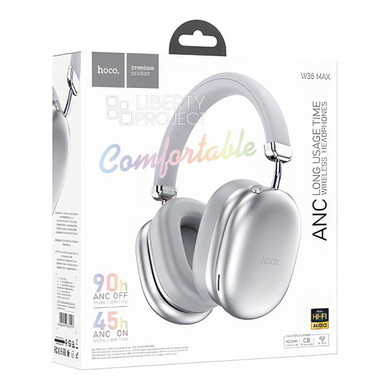 Bluetooth гарнитура HOCO W35 Max Auspicious BT 5.4, AUX, microSD, накладная, ANC (серебро)