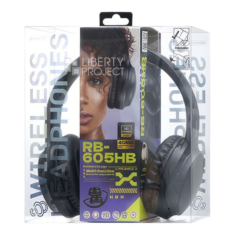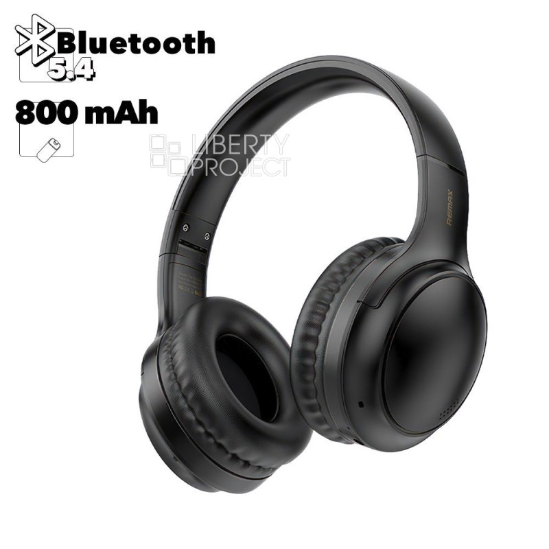 Bluetooth гарнитура REMAX RB-605HB, BT5.4, 3.5мм, накладная, громкость +/- (черный) мятая уп. (0L-00065630)