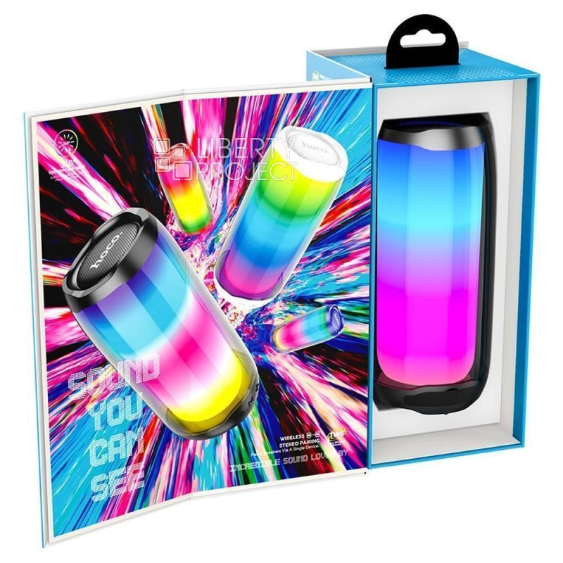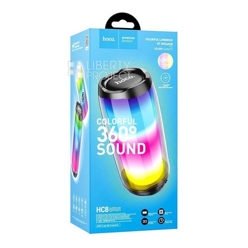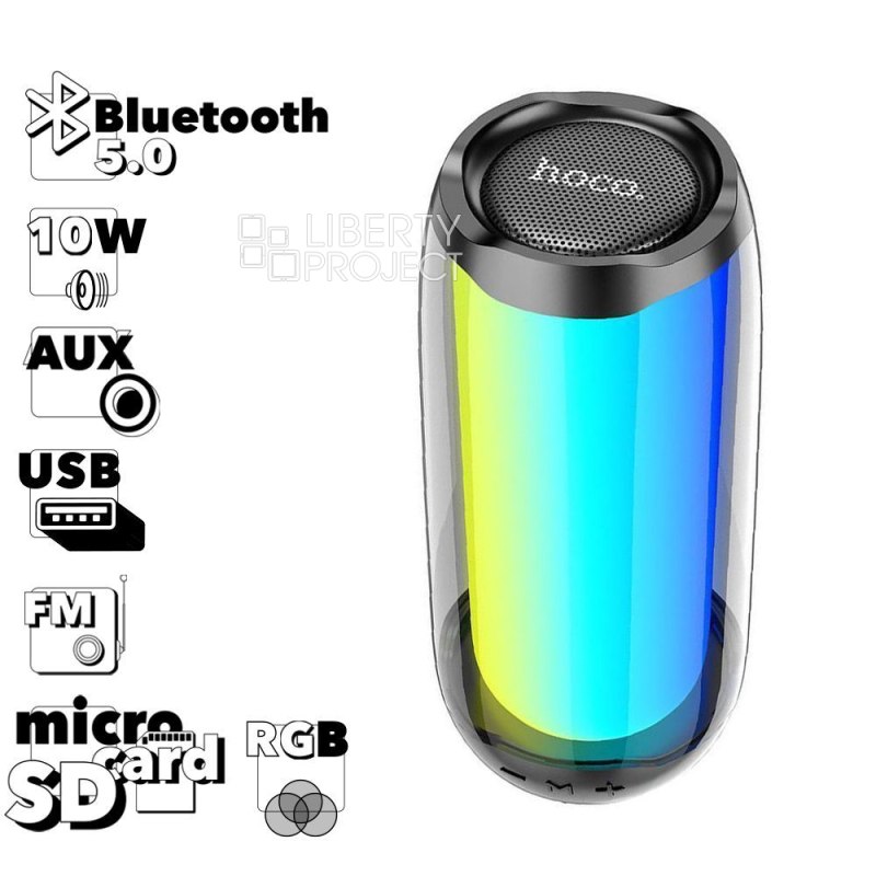 Bluetooth колонка HOCO HC8 Pulsating Colorful Luminous BT5.0, 10W, AUX/FM/microSD/USB (черный) мятая