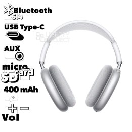 Тип: Bluetooth гарнитура; Особенности: Поддержка Bluetooth V 5.3, рабочая дистанция 10 м, время воспроизведения музыки до 20 часов, время разговора 20 часов, время полной зарядки 1,5 часа, время в режиме ожидания 180 часов, динамик 40 мм, регулируемая головная стяжка, складная конструкция оголовья, надёжная конструкция, вес 177.5г.
