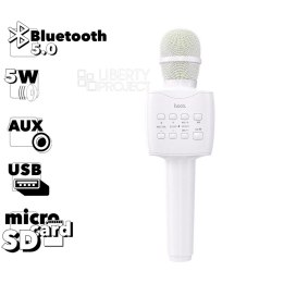Тип: Караоке-микрофон; Особенности: Поддержка Bluetooth V 5, рабочая дистанция до 15 м, время зарядки 3 часа, время воспроизведения музыки 6 часов, Динамик: 57 мм. Вес: 325 г.