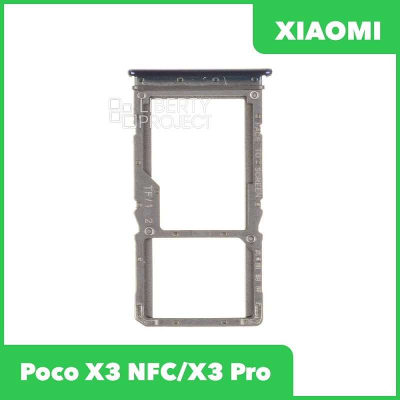 Описание: Держатель SIM для телефона Xiaomi POCO X3 NFC, Xiaomi POCO X3 Pro синего цвета.