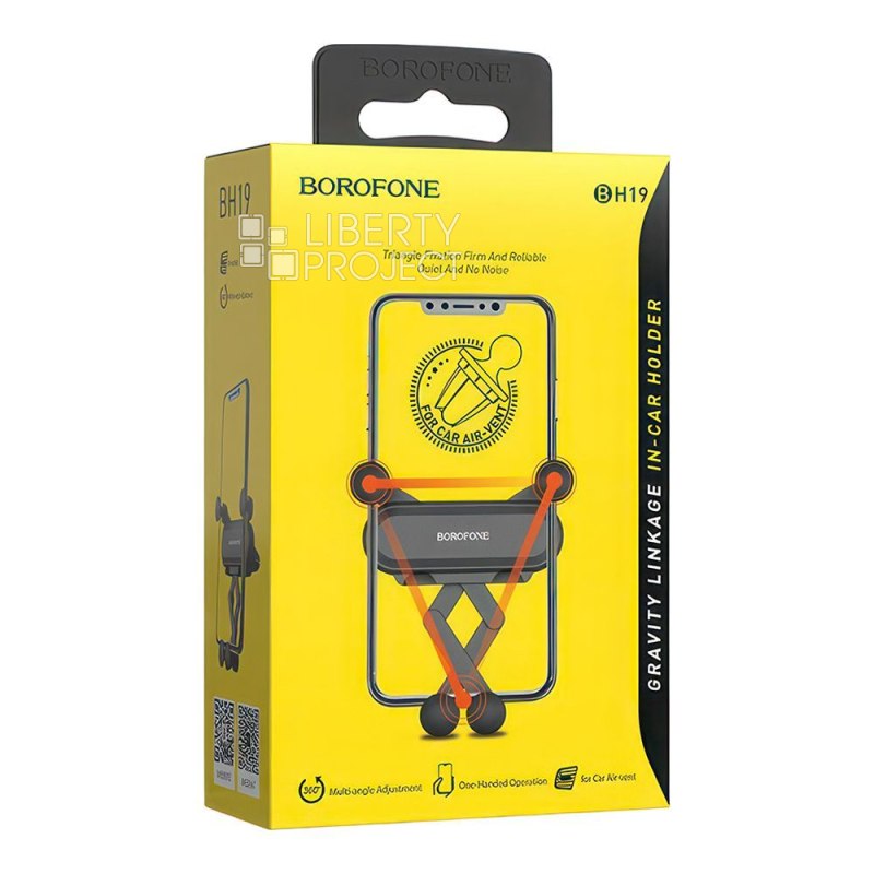 Держатель в автомобиль BOROFONE BH19 Eddie гравитационный, в воздуховод (черный) мятая упаковка (0L-00051465)