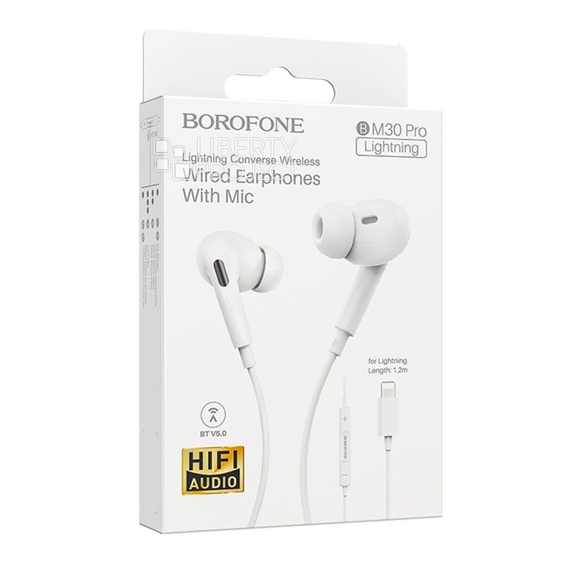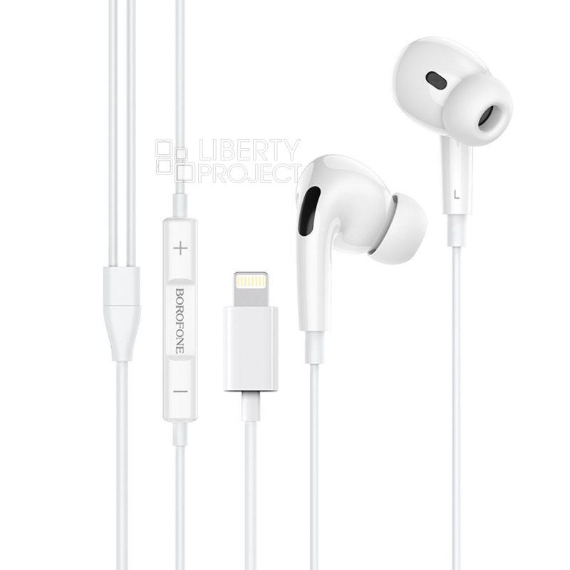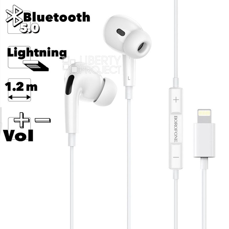 Гарнитура BOROFONE BM30 Pro Original BT 5.0, Lightning 8-pin, внутриканальная, громкость +/-, 1.2м (белый)