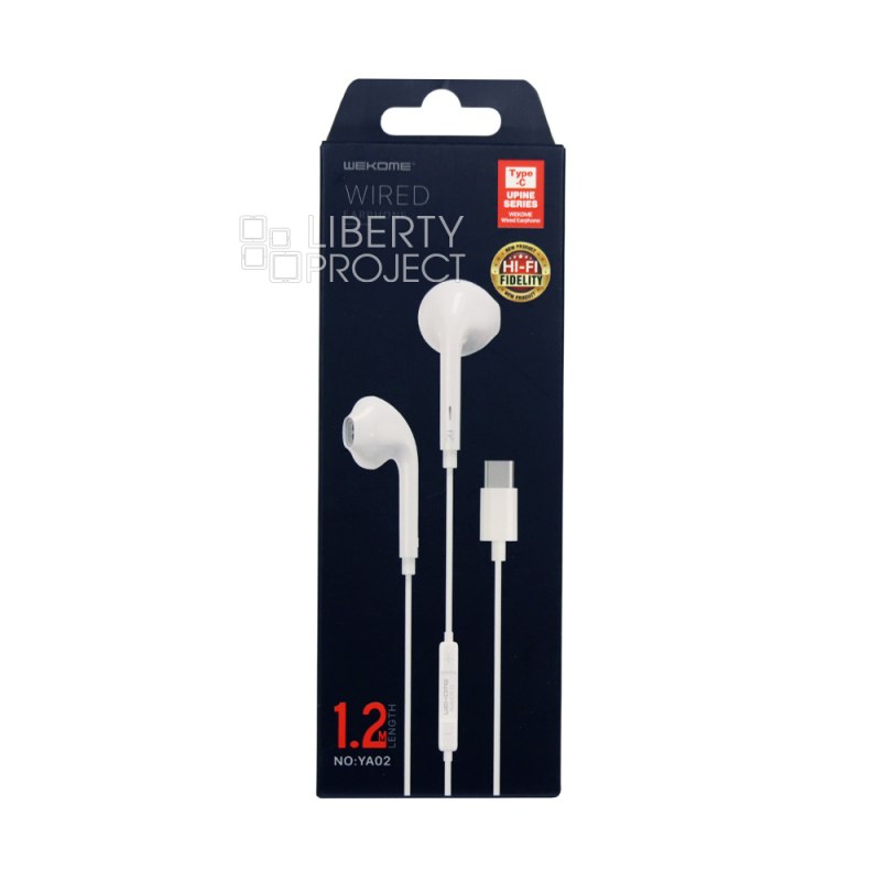 Гарнитура WK YA02 USB Type-C, громкость +/-, вкладыши, 1.2м (белый)