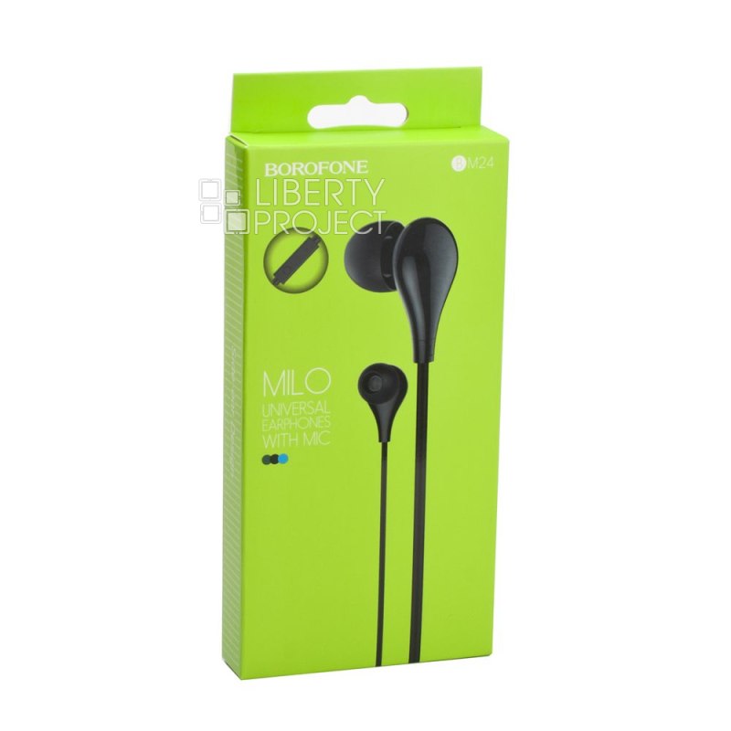 Гарнитура BOROFONE BM24 Milo 3.5мм, внутриканальная, 1.2м (черный) мятая упаковка (0L-00043204)