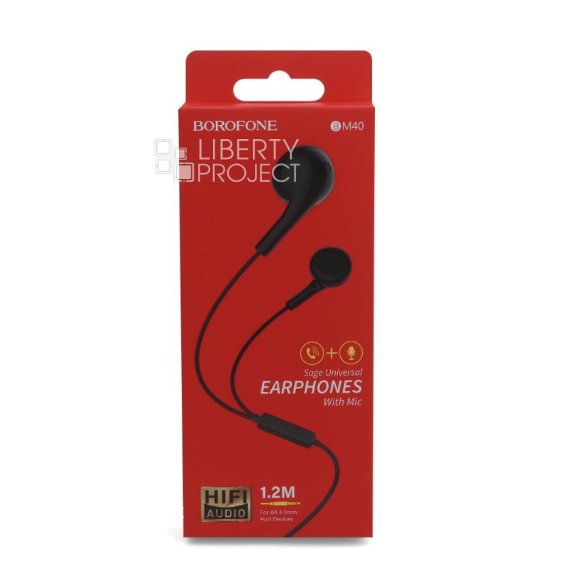 Гарнитура BOROFONE BM40 Sage 3.5мм, вкладыши, 1.2м (черный) мятая упаковка