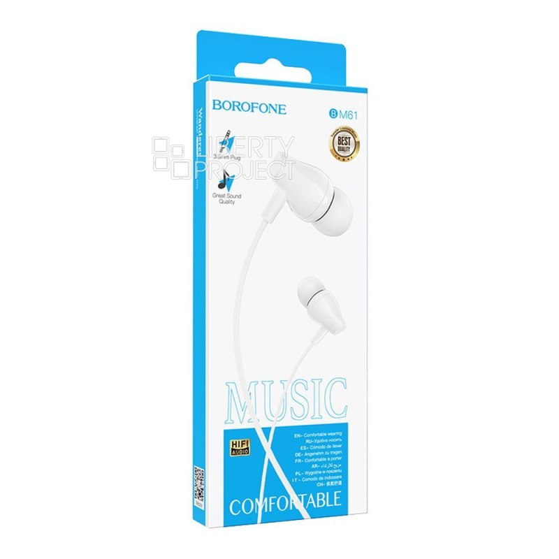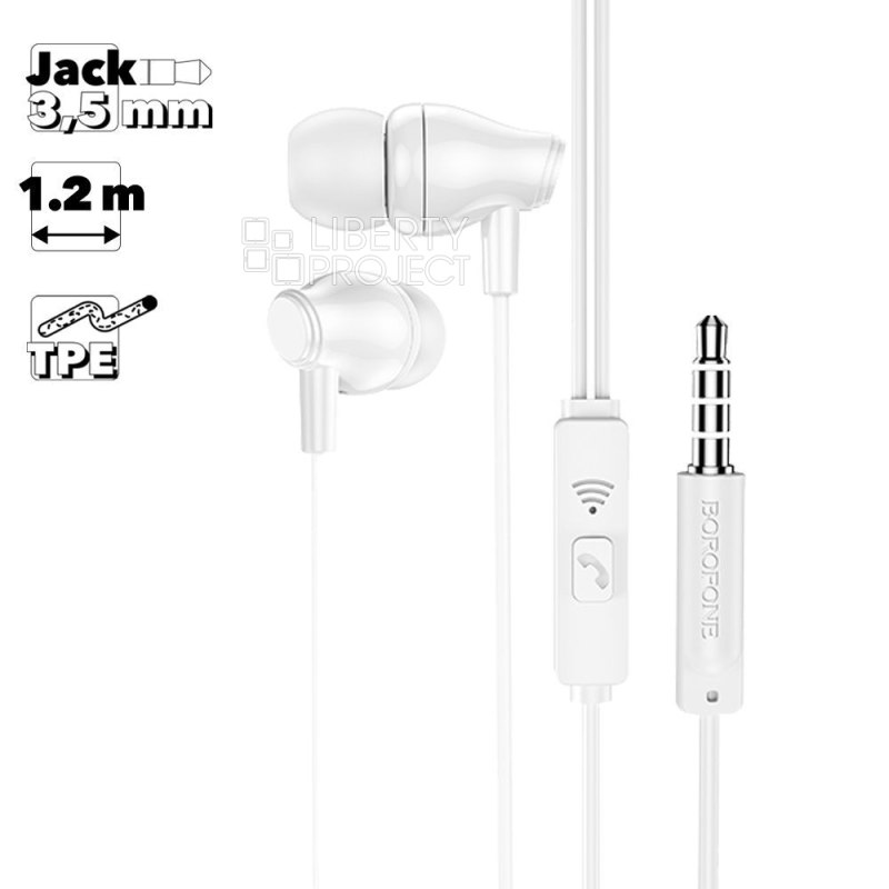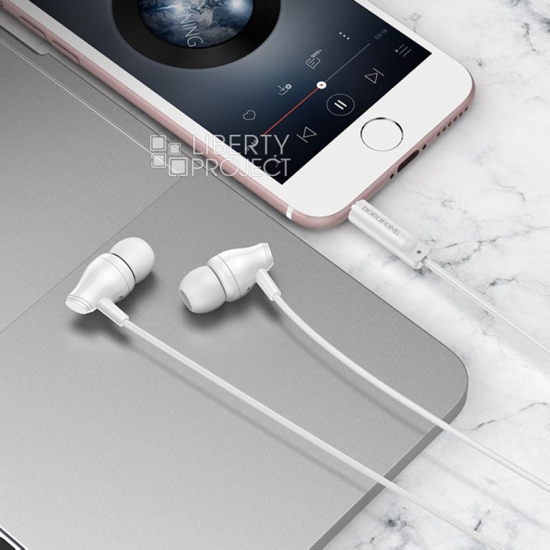 Гарнитура BOROFONE BM61 Wanderer 3.5мм, внутриканальная, 1.2 м (белый) мятая (0L-00050787)