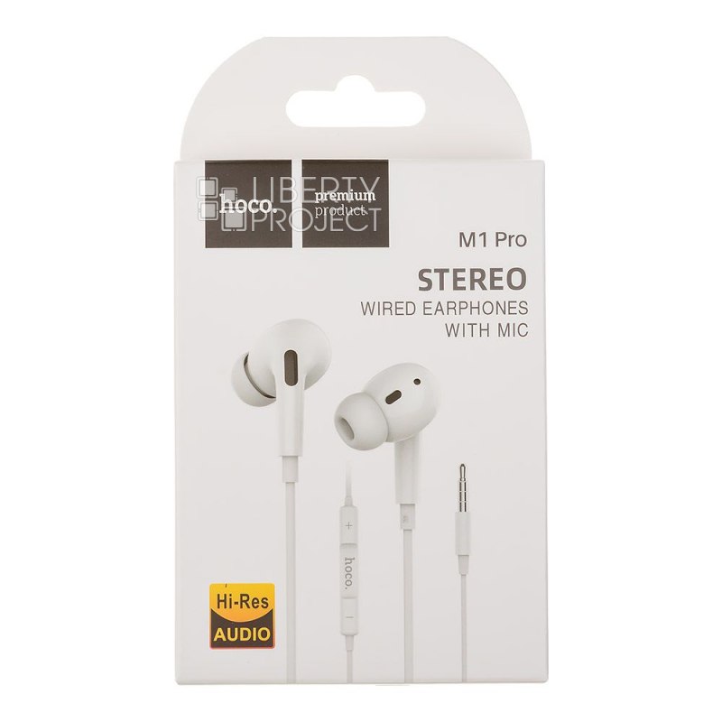 Гарнитура HOCO M1 Pro 3.5 мм, внутриканальная, громкость +/-, 1.2м (белый)