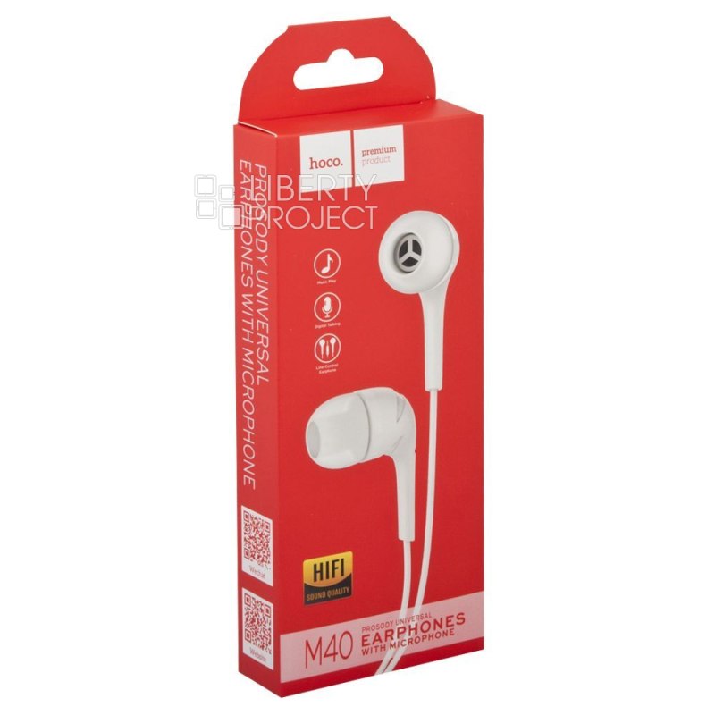 Гарнитура HOCO M40 Prosody 3.5мм, внутриканальная, 1.2м (белый) мятая упаковка (0L-00039766)