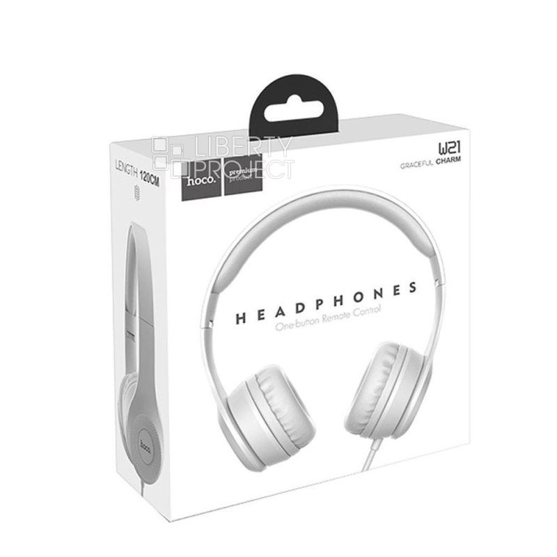 Гарнитура HOCO W21 Graceful Charm 3.5мм, накладная, 1.2м (серый) мятая упаковка