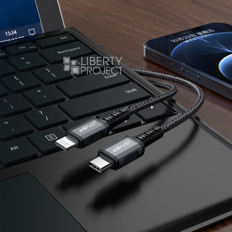 Кабель MFi ACEFAST C1-01 USB-C - lightning 8pin с металлическими коннекторами, серый