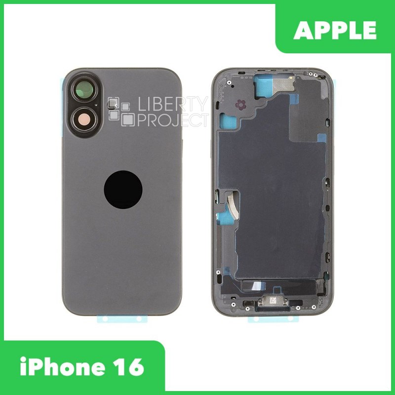 Описание: Корпус для телефона Apple iPhone 16 черного цвета.