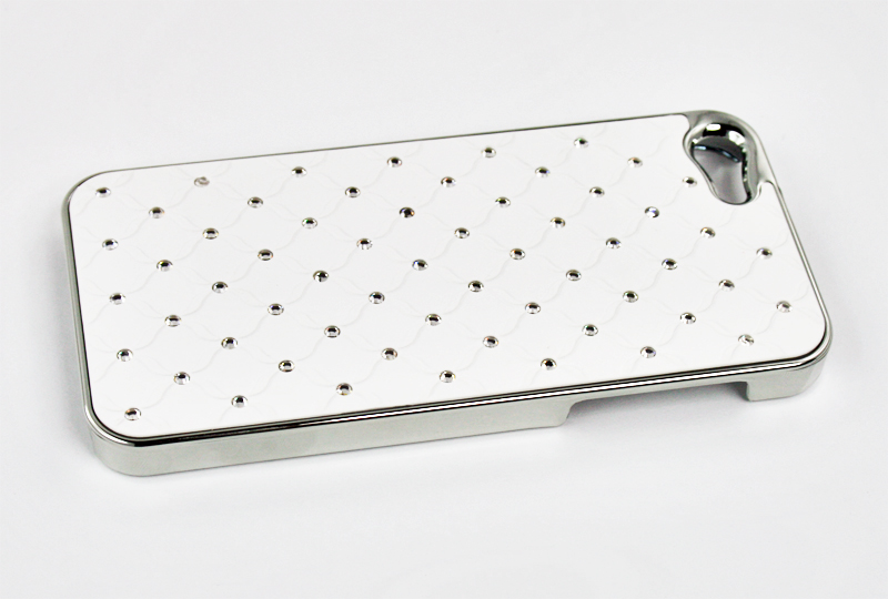 - Защитная крышка для iPhone 5 ромб со стразами (хром/белый)
