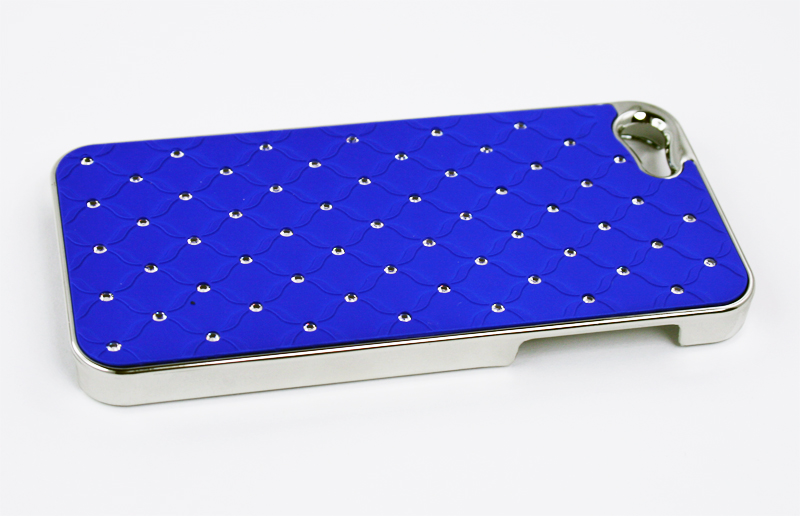 - Защитная крышка для iPhone 5 ромб со стразами (хром/синий)