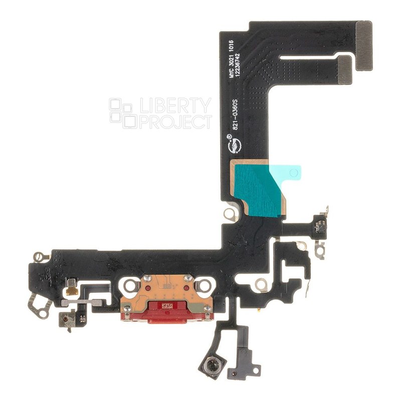Шлейф/FLC iPhone 13 mini системный разъем/микрофон (красный)