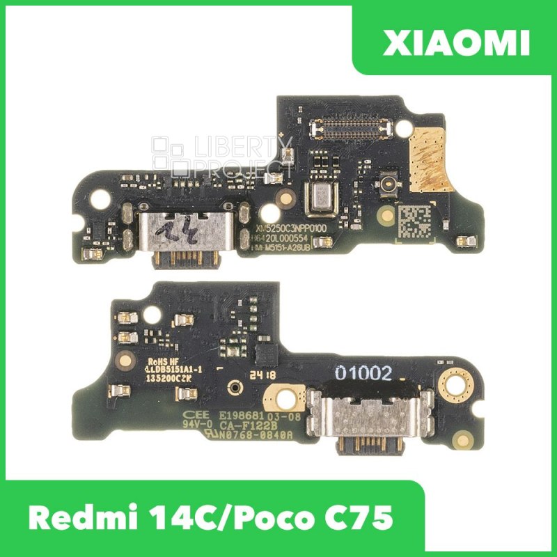 Описание: Нижняя плата для телефона Xiaomi Redmi 14C, Xiaomi POCO C75 на системный разъём/микрофон оригинал.