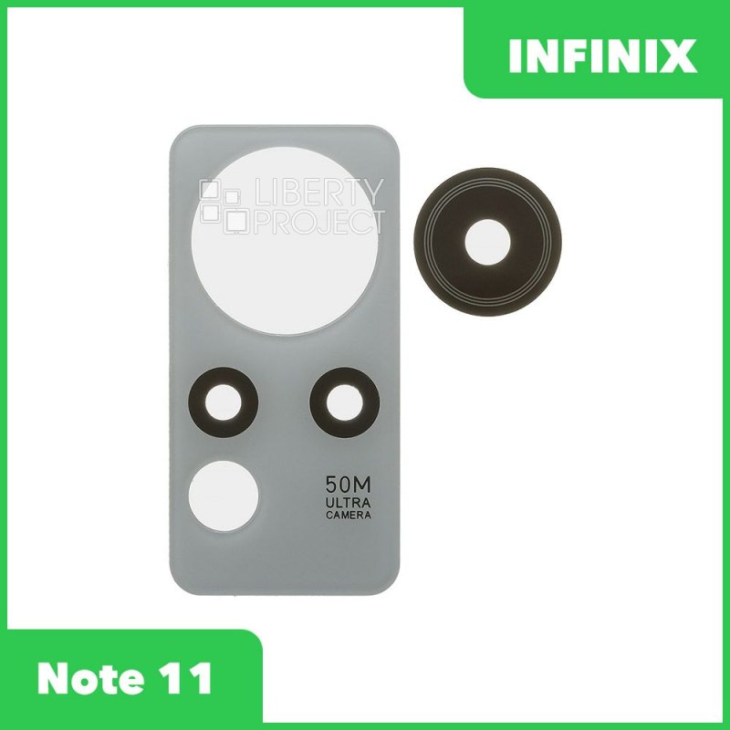Описание: Стекло задней камеры для телефона Infinix NOTE 11 без рамки белого цвета.