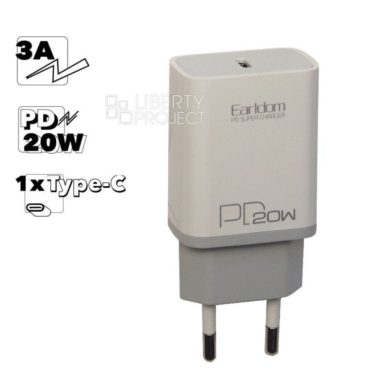 СЗУ Earldom ES-EU5 1xUSB-C, 3А, PD20W (белый)