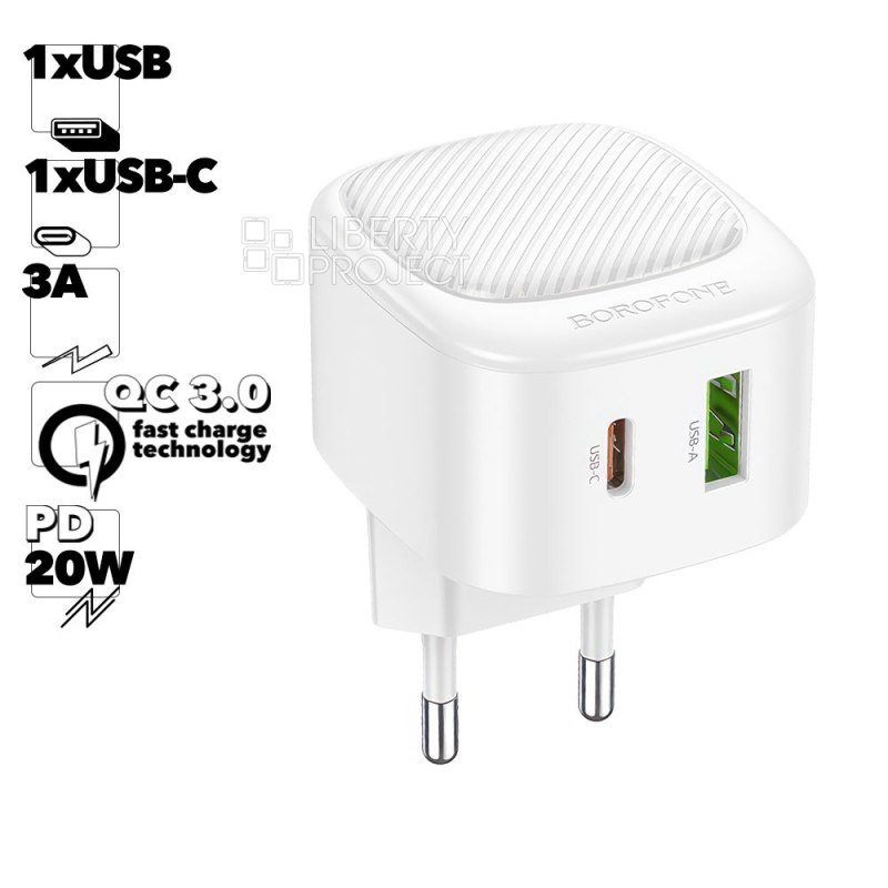СЗУ BOROFONE BAS22A Fortune 1xUSB, 1xUSB-C, QC3.0, PD20W (белый)