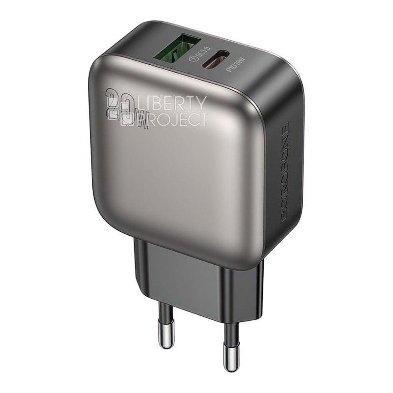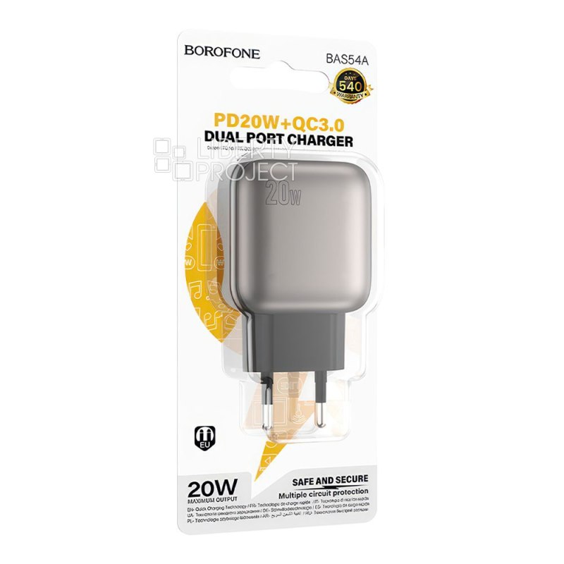 Описание: СЗУ BOROFONE BAS54A компактное устройство с высокой эффективностью для быстрой и стабильной зарядки смартфонов и других портативных гаджетов. Материал: ABS. Выход: USB-C: 20 Вт (PD/QC/FCP/AFC); USB-A: 20 Вт (QC/FCP/AFC); USB-C+USB-A=5 В/3 A. Европейская вилка.