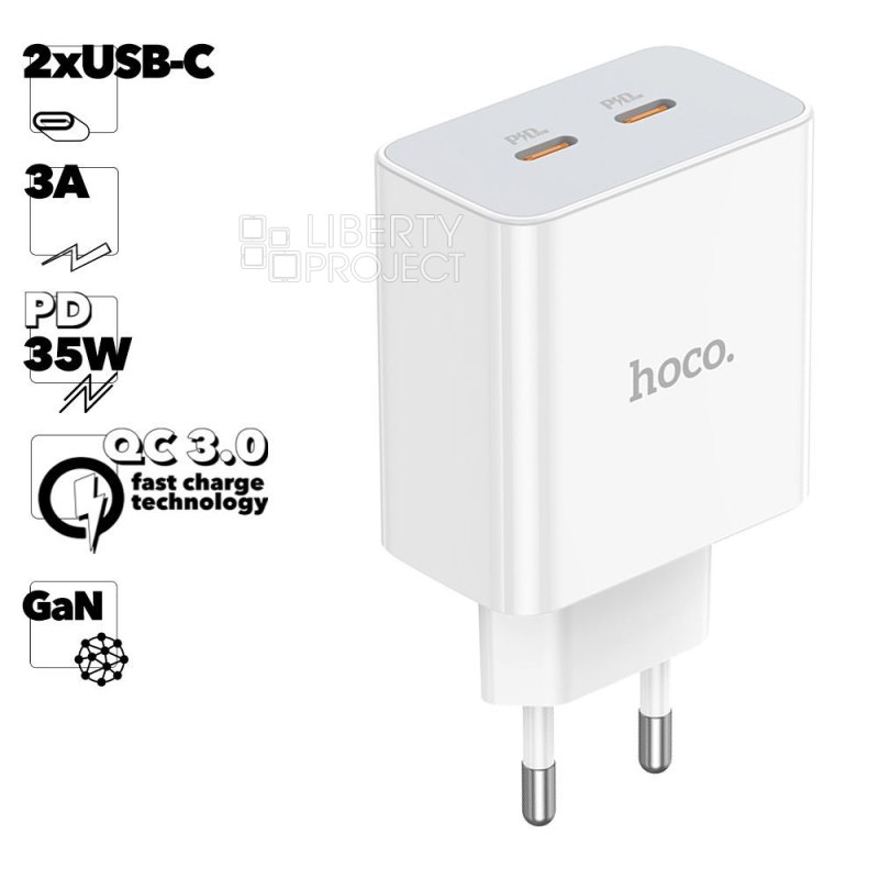 СЗУ HOCO C108A Leader 2xUSB-C, 3А, PD35W, QC3.0, GaN (белый) мятая упаковка