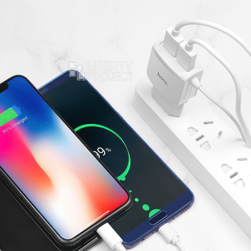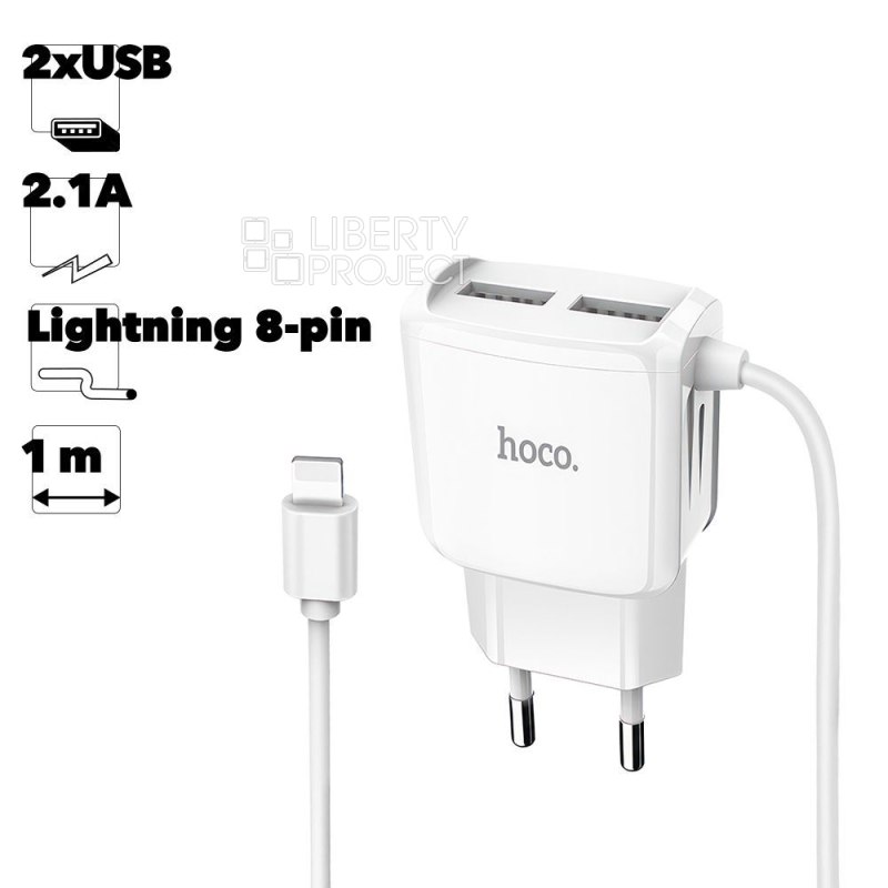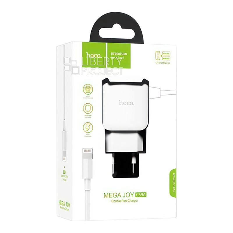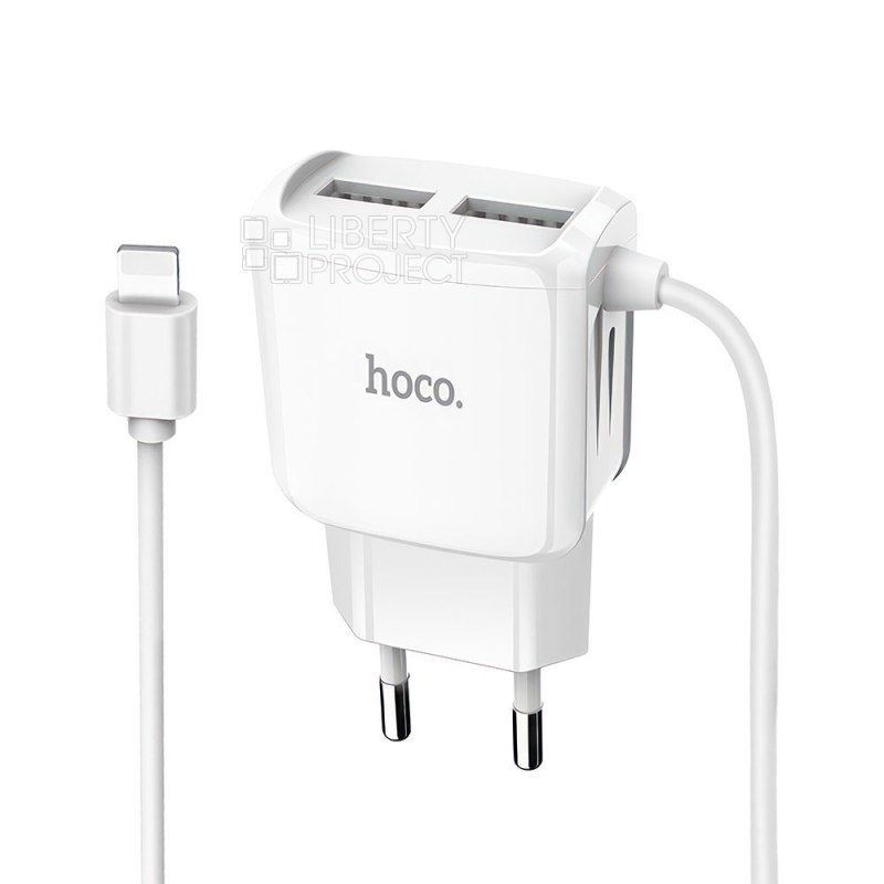 СЗУ HOCO C59A Mega Joy 2xUSB, 2.4А, интегр кабель Lightning 8-pin, 1м (белый) мятая
