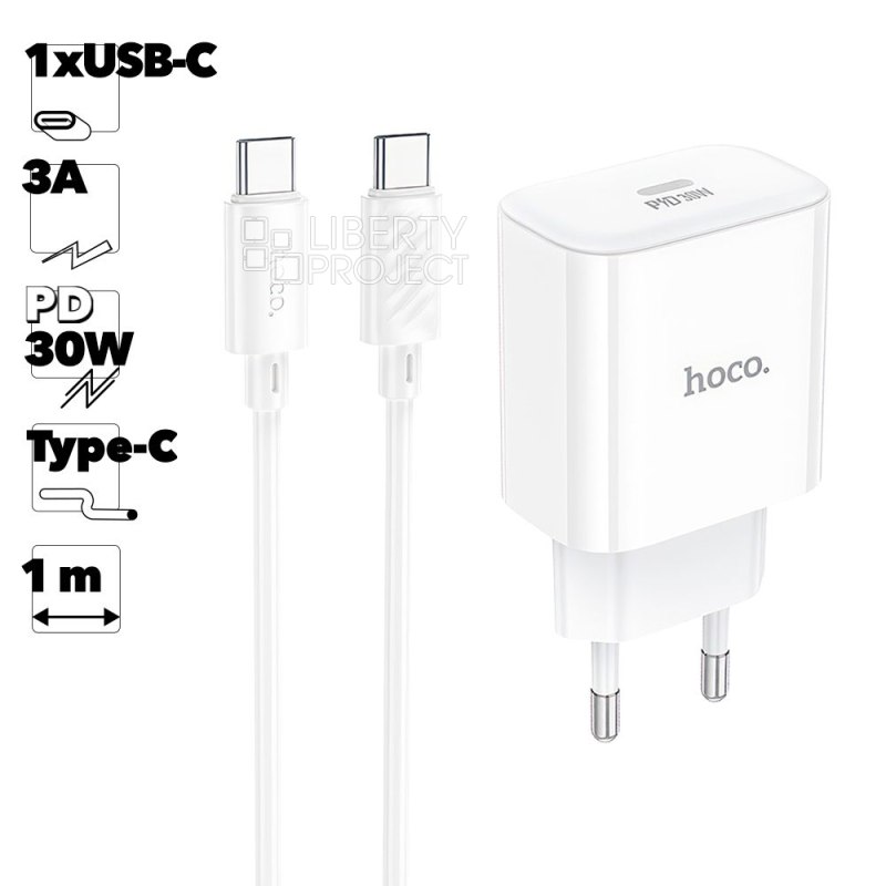 СЗУ HOCO C76A Pro Majestic 1xUSB-C, PD30W + USB-C кабель Type-C (белый)