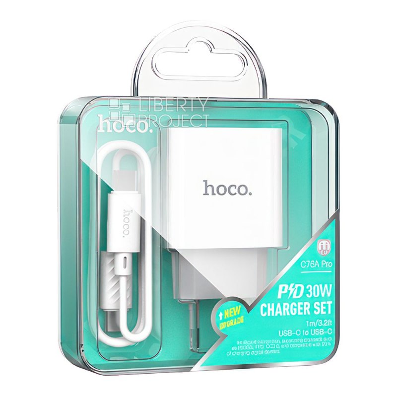 Описание: Зарядное устройство HOCO C76A Pro является компактным и эффективным аксессуаром, позволяющим быстро и надежно заряжать ваш смартфон и другие портативные девайсы. Материал: ABS. Мощность: Type-C: 30 Вт (PD / QC / FCP / AFC). EU вилка. Комплектуется 1-метровым кабелем для быстрой зарядки USB-C на Type-C.