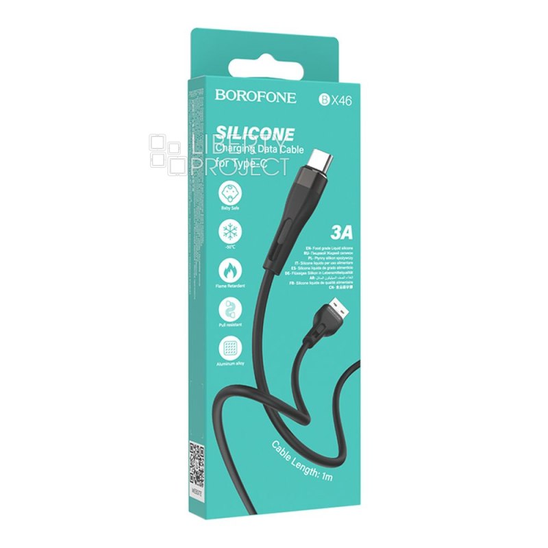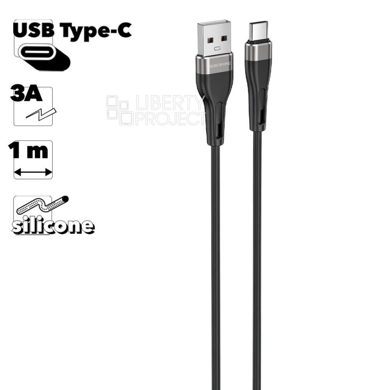 USB кабель BOROFONE BX46 Rush Type-C, 3А, 1м, силикон (черный)