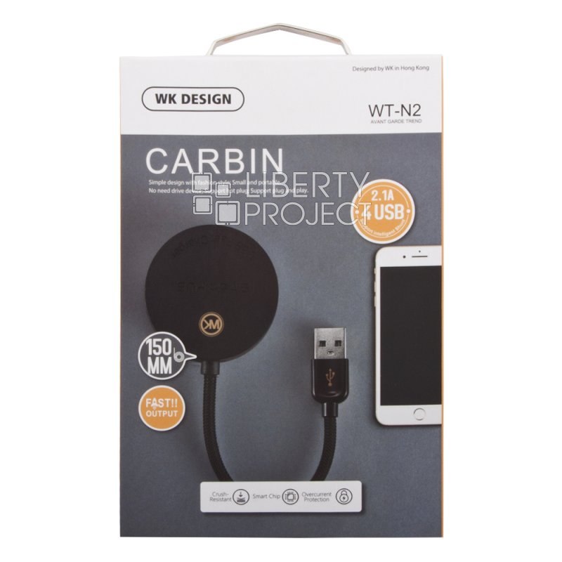 USB Хаб WK Carbin WT-N2 на 4 порта провод 15 см (черный)