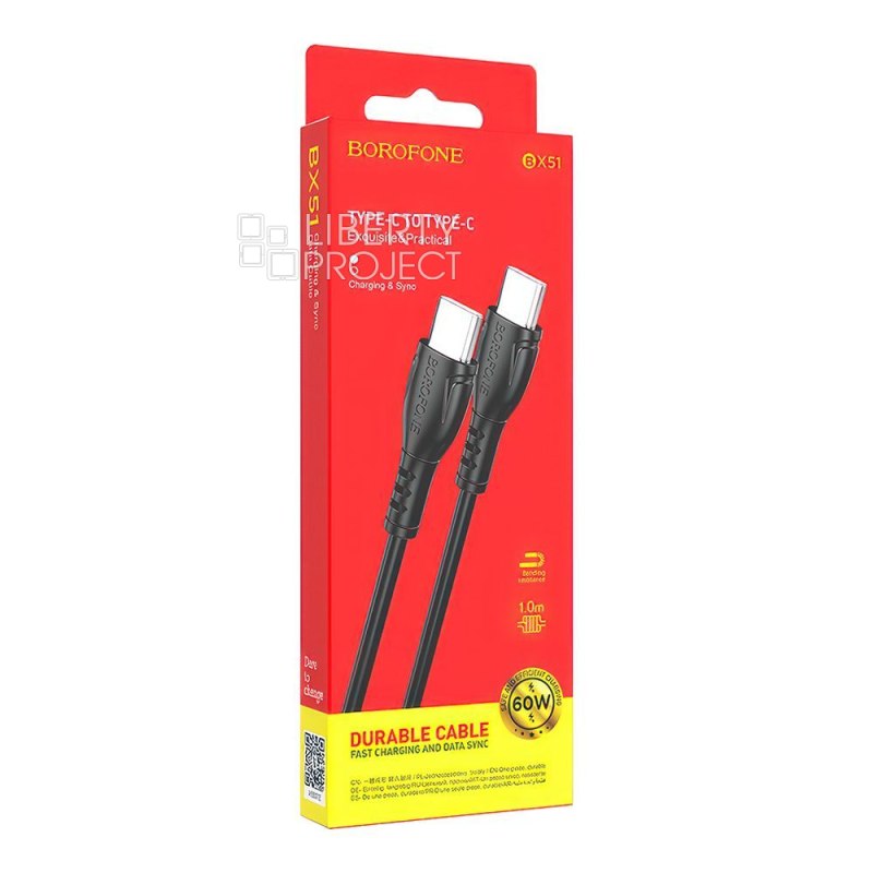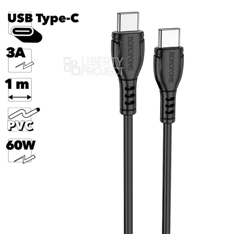 USB-C кабель BOROFONE BX51 Triumph Type-C, 3А, 60W, 1м, PVC (черный) мятая