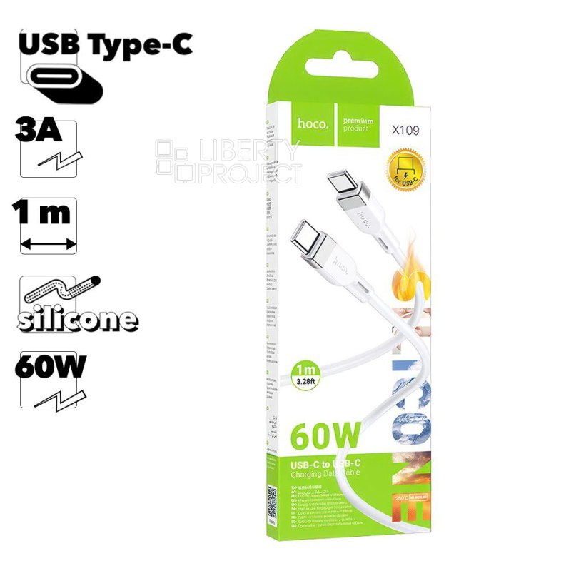 Описание: Кабель USB-С HOCO X109 своей практичностью и стойкостью к износу обеспечивает скоростную и стабильную передачу данных и заряд вашего устройства. Поддержка зарядки мощностью 60Вт для ноутбуков и зарядки 3A для мобильных телефонов. Сердечник: (35/0.1)*2+(10/0.1)*3 диаметр 3.8 мм.
