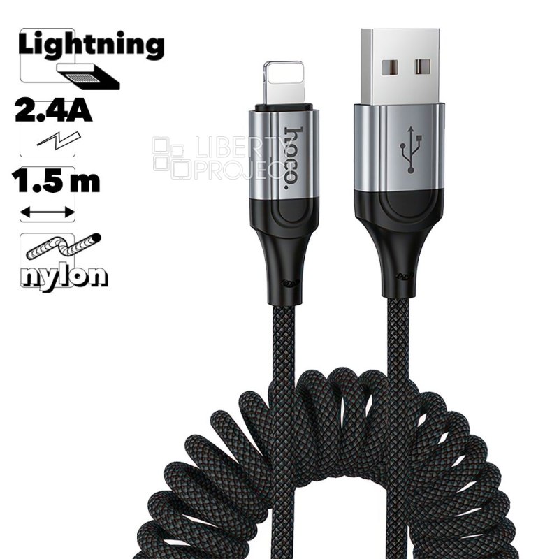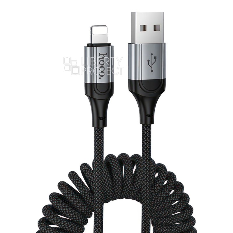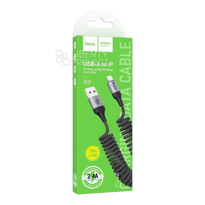 USB кабель HOCO X121 Nuevo Lightning 8-pin, 2.4A, пружина, 1.5м, нейлон (черный)