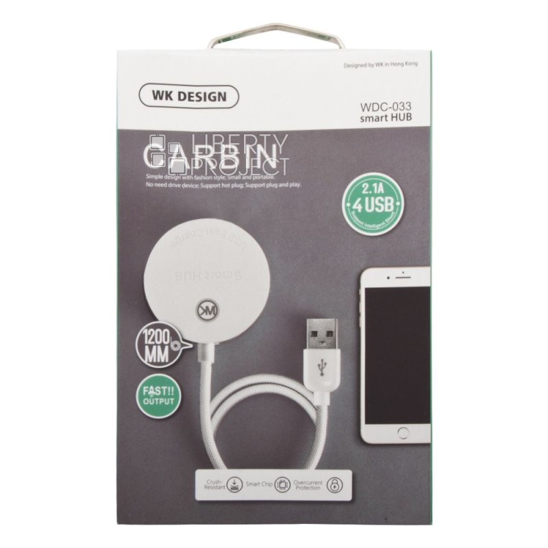 USB Хаб WK Carbin WDC-033 на 4 порта провод 120 см (белый) мятая упаковка