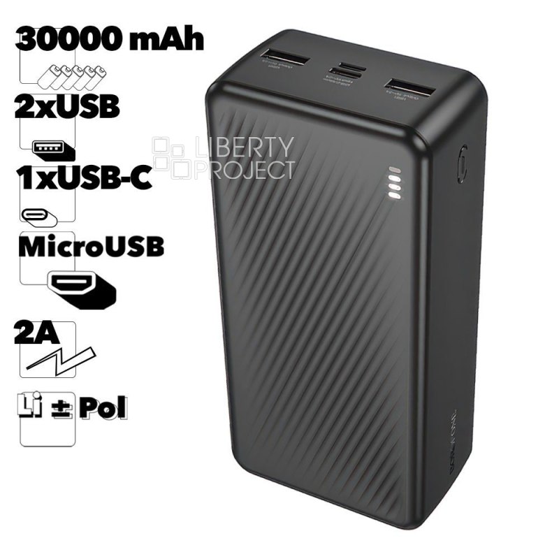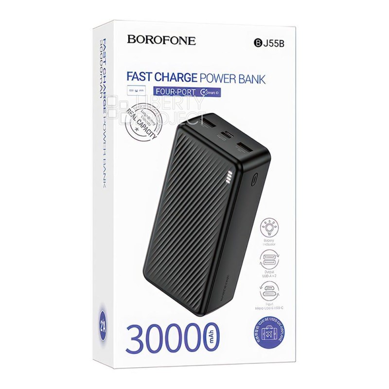 Внешний АКБ BOROFONE BJ55B Graceful 30000 mAh, 2xUSB, 2А, Li-Pol (черный) мятая упаковка