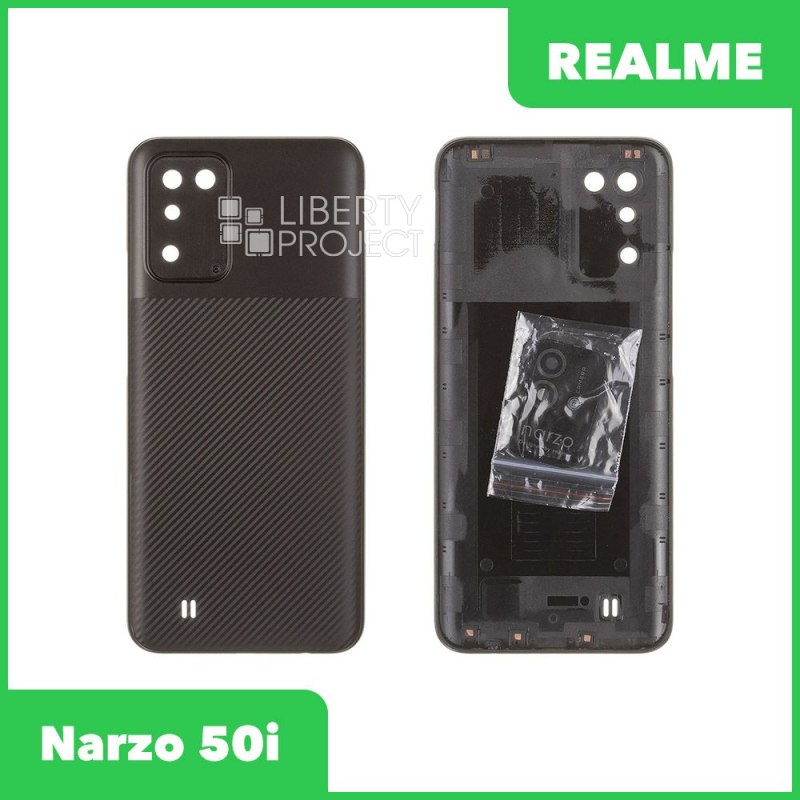 Описание: Задняя крышка для телефона Realme narzo 50i черного цвета.