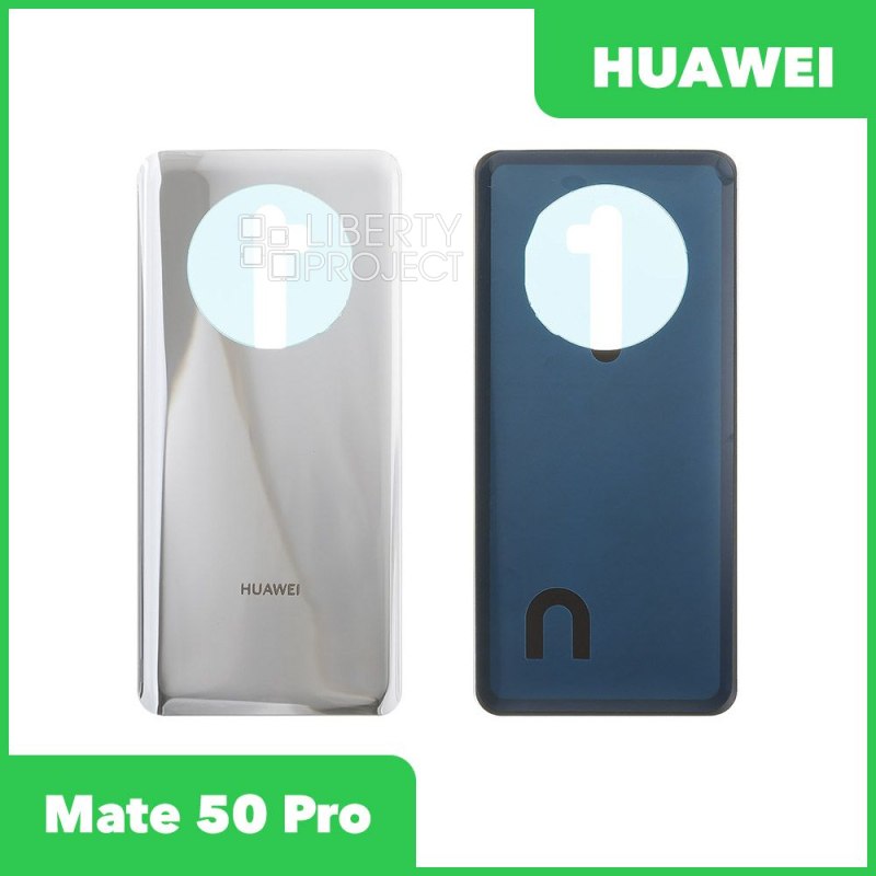Описание: Задняя крышка для телефона Huawei Mate 50 Pro серебряного цвета.
