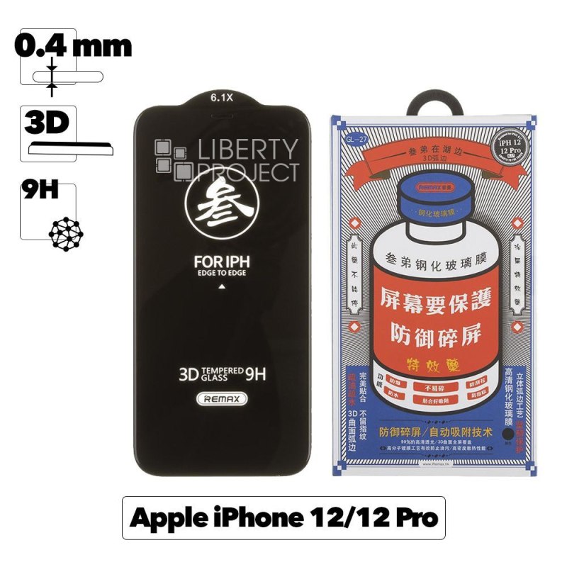Защитное стекло REMAX GL-27 Medicine для Apple iPhone 12/12 Pro, 3D, черная рамка, 0.3мм мятая